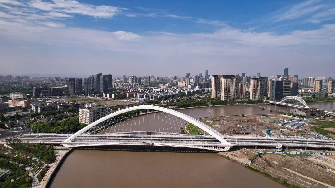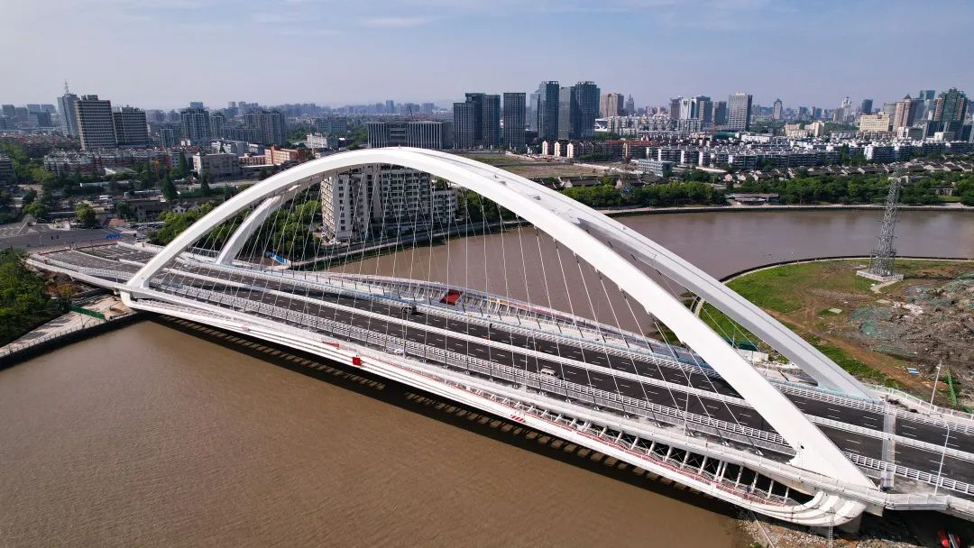俯瞰大橋,其拱肋鏤空設(shè)計(jì)以寧波市簡(jiǎn)稱“甬”字型呈現(xiàn),見(jiàn)證著“甬城”交通網(wǎng)絡(luò)的日趨完善。大橋通車后將有效緩解寧波市長(zhǎng)豐橋、芝蘭橋通行壓力,進(jìn)一步加強(qiáng)海曙區(qū)與鄞州區(qū)的交通聯(lián)系,推動(dòng)區(qū)域經(jīng)濟(jì)發(fā)展。該橋也將成為四川路橋在浙江地區(qū)繼舟山西堠門大橋、梅山春曉大橋、寧波三官堂大橋等地標(biāo)性建筑后的又一力作。