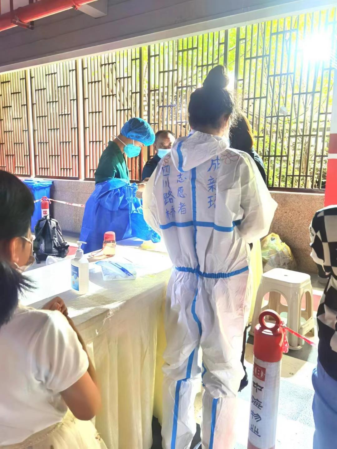 新材料集團(tuán)職工王瀟作為一名黨員,更是一名四川路橋黨員先鋒服務(wù)隊(duì)的隊(duì)員,在做好家人的居家防護(hù)后,向所在小區(qū)申請(qǐng)了志愿者服務(wù),9月3日,為了讓前一日連續(xù)奮戰(zhàn)到深夜的志愿者可以輪換休息,她顧不上吃飯喝水,堅(jiān)守在核酸檢測(cè)一線崗位,維護(hù)秩序需要的時(shí)候就充當(dāng)紅馬褂的角色,掃碼員緊張的時(shí)候就去穿上白大褂幫著掃碼,有群眾發(fā)生爭(zhēng)執(zhí)時(shí)就去當(dāng)調(diào)解員,哪里需要她就出現(xiàn)在哪里,成為了小區(qū)群眾都認(rèn)識(shí)的“萬金油”。
