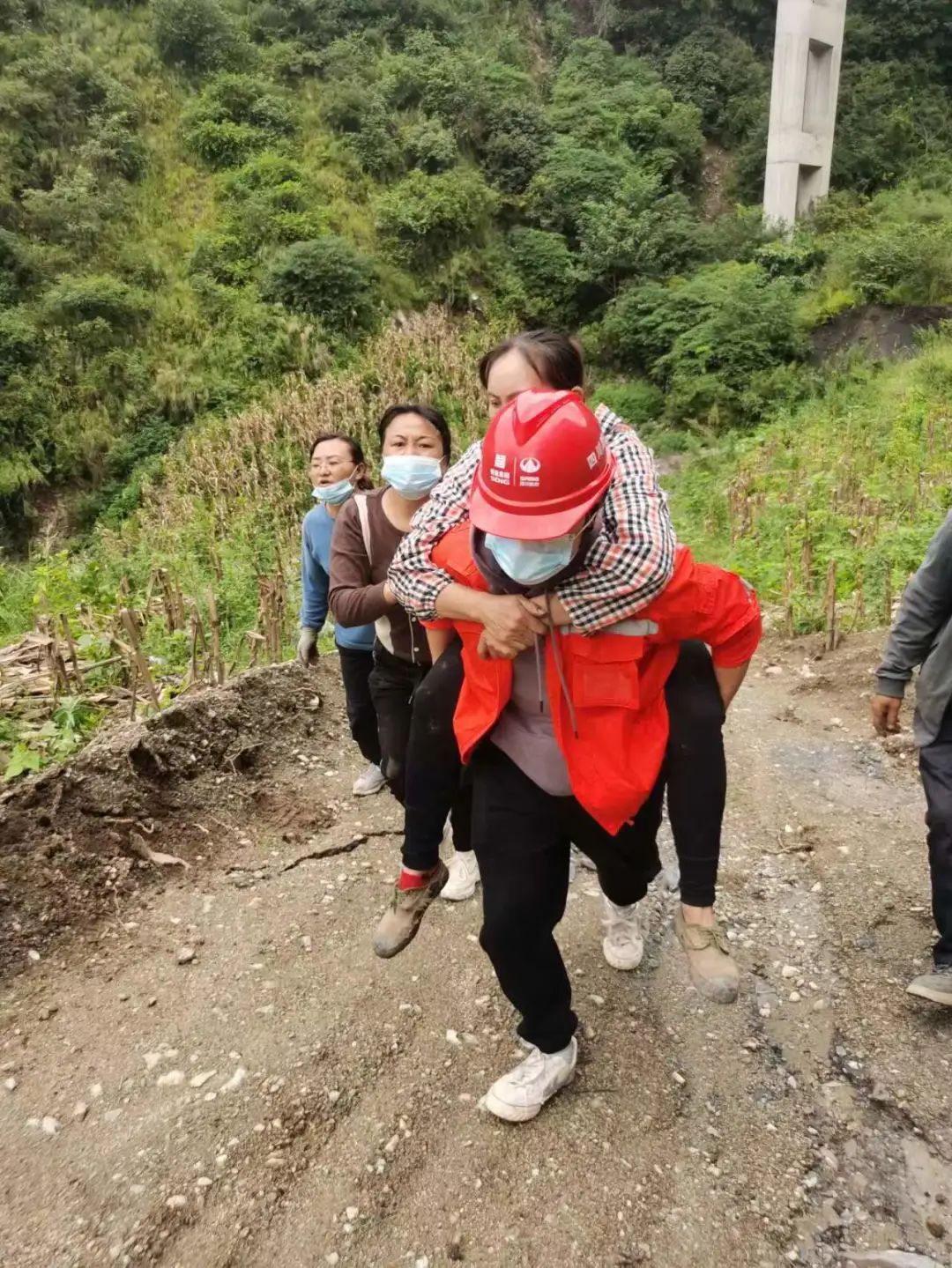 “灣東村受災(zāi)嚴(yán)重,房屋垮塌,不少村民掩埋,需要我們年輕力量進(jìn)行支援,黨員和青年職工跟我走!”為解救受困的灣東村村民,保障受傷村民及時(shí)就醫(yī),項(xiàng)目經(jīng)理易成龍迅速召集項(xiàng)目黨員、青年團(tuán)員13人奔赴灣東村受災(zāi)現(xiàn)場,積極配合當(dāng)?shù)卣?,轉(zhuǎn)運(yùn)村民就醫(yī)。面對道路被阻斷難題,易成龍望了一眼身后的山崖和前方的大渡河,心中所想只有一件事——時(shí)間。于是,他當(dāng)即決定利用大渡河河道展開救援,在河對岸的山崖上開辟出一條臨時(shí)救援道路,盡最大努力縮短村民就醫(yī)時(shí)間。根據(jù)分工,7名突擊隊(duì)員負(fù)責(zé)在山腳接應(yīng)傷員,并用擔(dān)架抬著受傷村民翻越山崖,到能通行的大路上去,另外6人以兩人為一組接應(yīng),輪流背著傷員前往停車點(diǎn)。經(jīng)過近4小時(shí)的堅(jiān)持不懈,截止5日下午17時(shí),項(xiàng)目部13名突擊隊(duì)員共計(jì)幫助運(yùn)送受困村民近20人,其中6名受傷村民已順利到達(dá)鎮(zhèn)醫(yī)院接受治療,無生命危險(xiǎn)。