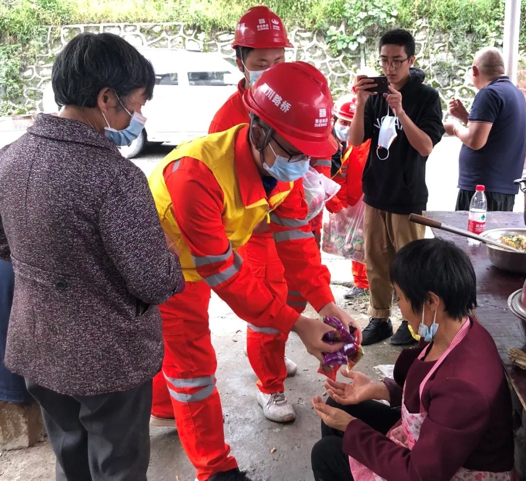 隨后幾天,老易時不時前去安置點看望受災村民,打電話詢問受傷老鄉(xiāng)的恢復進展。臨近中秋節(jié),老易還前往南頭村村民安置點,為老鄉(xiāng)們送去了中秋月餅等慰問品,與大家親切交流,關心大伙的生活狀況。雖是一名年輕人,老易與大爺大媽們有說有笑,噓寒問暖,溝通起來絲毫沒有代溝和障礙,也有效地緩解了大家緊張和悲傷的情緒。在臨時帳篷里,有位大叔還激動地對他說:“我認得你,你是那天背人那個,跑多快”,說罷便豎起一個大拇指。老易也不忘一個勁兒地為老鄉(xiāng)們加油打氣:“老鄉(xiāng)們,大家一定要振作起來,有任何需求,直接找我們就是,我們項目部就在隔壁,路橋人永遠是你們的親人。”說罷便將月餅遞到鄉(xiāng)親們的手中。
