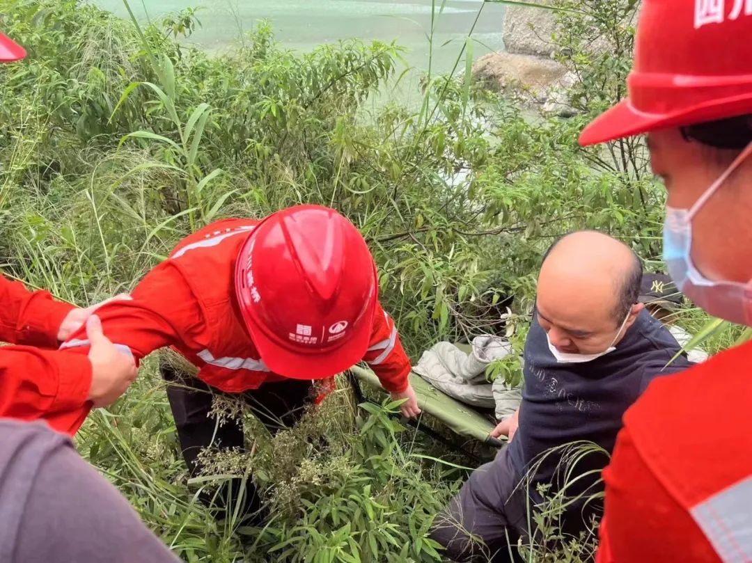 “兄弟們,剛剛接到政府指揮部的消息,我們河對面南頭村三組受困村民較多,急需我們協(xié)助,黨員和青年職工跟我走!”為解救受困村民,保障受傷村民及時就醫(yī),老易迅速召集項目黨員、青年團員13人賡即前往南頭村三組受災現(xiàn)場,協(xié)助轉運村民就醫(yī)。南頭村三組位于項目駐地大渡河對岸河床上,距離鎮(zhèn)醫(yī)院約六公里,有村戶約20余戶,因地震導致房屋倒塌約10余處,受傷村民6人。該村原通往得妥鎮(zhèn)的各條道路,因山體滑坡均被阻斷。沒有路,那就想辦法造一條路出來。老易望著身后的山崖和前方的大渡河,思索片刻后對大家說:“受傷村民急需醫(yī)治,刻不容緩,來不及了,我們得趕緊,就算是蹚也要蹚出一條路出來,背也要把老鄉(xiāng)們背上去。”