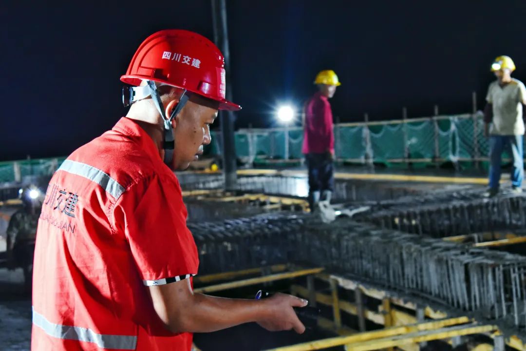 繼續(xù)前進(jìn),抓好復(fù)工復(fù)產(chǎn) 在做好搶險(xiǎn)救災(zāi)一線后勤保障工作的同時(shí),楊帆也積極投入到復(fù)工復(fù)產(chǎn)中,及時(shí)編制復(fù)工復(fù)產(chǎn)專項(xiàng)施工方案,組織進(jìn)行震后隱患二次排查和檢測(cè),確保項(xiàng)目部盡快按下“啟動(dòng)鍵”。9月15日凌晨1點(diǎn),大杉樹(shù)樞紐互通C匝道第1聯(lián)預(yù)應(yīng)力現(xiàn)澆連續(xù)箱梁完成混凝土澆筑,標(biāo)志著瀘石TJ10項(xiàng)目部復(fù)工率達(dá)100%。一直堅(jiān)守現(xiàn)場(chǎng)的楊帆眼里布滿紅血絲,但他很興奮,“經(jīng)過(guò)這次地震的考驗(yàn),大家更有拼勁、沖勁、干勁了,接下來(lái)我們會(huì)加快腳步、全力沖刺,確保完成全年生產(chǎn)任務(wù)!” “我是四川路橋人,是道路建設(shè)者、守護(hù)者,哪里有困難、哪里最艱辛,我就去哪里!”楊帆繼續(xù)在搶險(xiǎn)救災(zāi)和生產(chǎn)建設(shè)一線發(fā)光發(fā)熱,以實(shí)干擔(dān)當(dāng)詮釋四川路橋人的責(zé)任和擔(dān)當(dāng)。
