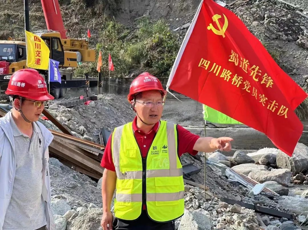 作為四川路橋交建集團(tuán)隧道公司的負(fù)責(zé)人,汪比超親歷過“5·12”汶川大地震,“9·5”瀘定地震發(fā)生后,他迅速判斷出這次情況十分危急,必須立刻趕往現(xiàn)場,那里還有隧道公司6個(gè)在建項(xiàng)目,超過200人項(xiàng)目部員工!一路上余震頻頻,他顧不上沿途隨時(shí)飛落的沙石,直奔位于得妥鎮(zhèn)的瀘石C2總包部搶險(xiǎn)指揮部。根據(jù)搶險(xiǎn)指揮部安排,汪比超擔(dān)任應(yīng)急搶險(xiǎn)組組長,全面負(fù)責(zé)省道S217瀘定段的搶險(xiǎn)工作,統(tǒng)籌指揮7支分隊(duì)按搶險(xiǎn)方案迅速開展工作,爭分奪秒投入到搶險(xiǎn)救援工作當(dāng)中。6日下午,第一個(gè)好消息傳出——S434金光至磨西段10公里斷道成功搶通,一條從瀘定縣城到震中磨西鎮(zhèn)的生命通道搶通了!此時(shí)距離投入搶險(xiǎn)不到24小時(shí),汪比超初戰(zhàn)告捷,顧不上喝一口水,又迅速轉(zhuǎn)戰(zhàn)下一個(gè)搶險(xiǎn)點(diǎn)位。