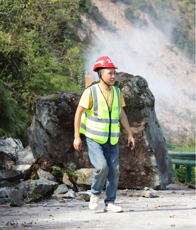“當(dāng)搶險(xiǎn)命令下達(dá)的那一刻,我找到了自己的目標(biāo)!”四川路橋交建集團(tuán)隧道公司瀘石高速TJ9項(xiàng)目部工程科職員李坤宇像箭簇一樣奔赴“戰(zhàn)場”。在桃壩隧道至大崗山隧道懸崖段搶險(xiǎn)現(xiàn)場,李坤宇頭頂是滾滾落石,腳下是懸崖,但這絲毫沒有動(dòng)搖他繼續(xù)向前的決心,他冒著再次塌方的危險(xiǎn)指揮機(jī)械清理邊坡塌方,為過往車輛觀察放哨,確保救援車輛和人員安全通行?!拔沂悄贻p人,關(guān)鍵時(shí)刻就該沖在前面!” 懸崖段道路被打通后,李坤宇又馬不停蹄地轉(zhuǎn)戰(zhàn)幸福村村道搶通工作中,即使上方是高危塌方,下面是懸崖,前方是多處坍塌的路基,李坤宇也從未想過后退,以攻堅(jiān)克難的銳氣和不畏艱險(xiǎn)的勇氣書寫新時(shí)代路橋青年員工矢志不渝的初心!