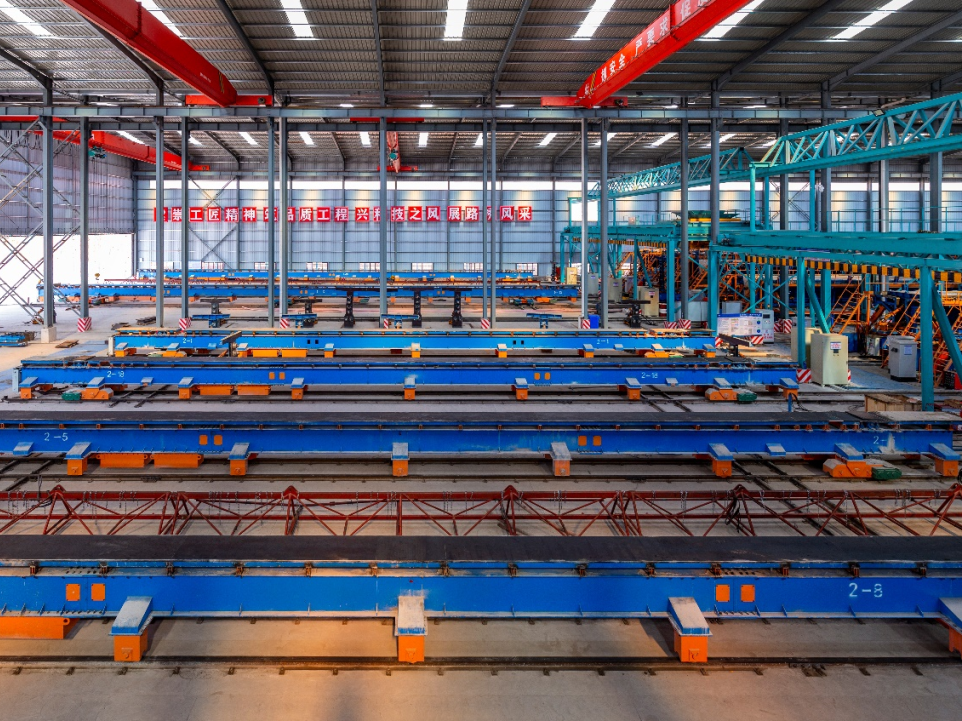 “智慧梁廠”2.0在模板工程方面,“智慧梁廠”2.0采用“固定模板+移動臺座”的新型預(yù)制方式,實現(xiàn)預(yù)制梁幾何尺寸毫米計,操作人員相對于傳統(tǒng)施工模式減少60%,施工速率提升100%。