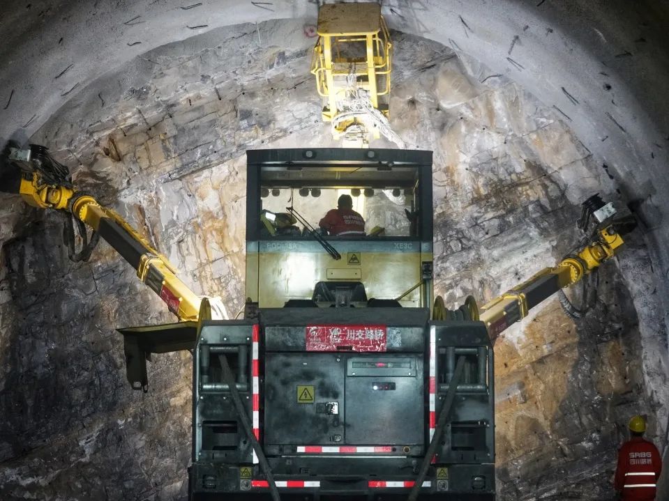 在隧道污水處理方面,仁沐新高速五指山特長隧道運用多級模塊化階段式循環(huán)凈化隧道內(nèi)污水處理技術(shù),打造隧道污水處理自動化控制系統(tǒng),實現(xiàn)污水處理自動過濾、智能加藥、智慧監(jiān)測,日均污水處理量可達(dá)20000m3。同時,五指山隧道還創(chuàng)新研發(fā)富水隧道初期支護(hù)濕噴砼施工方法,有效解決了富水圍巖地質(zhì)條件下的濕噴砼施工難題。在豎井建造方面,四川路橋的通風(fēng)豎井建造技術(shù),打破了豎井深度不宜超過300米的限制,月成井速度由不足30米提高到100米;“蜀暢號”豎井TBM順利始發(fā)更為全國首例。